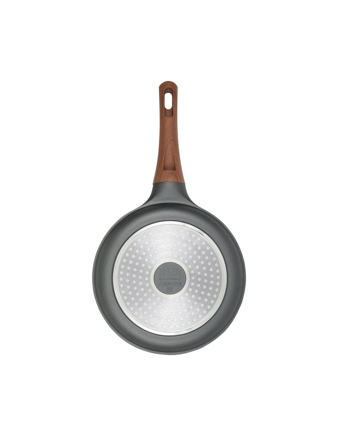 Eleva tu cocina con la sartén Capella: diseño único 3D, mango ergonómico de madera, recubrimiento antiadherente PFLUON de 4 capas, y base reforzada para una cocción perfecta en todo tipo de fogones. ¡Cocina con estilo, durabilidad y comodidad!