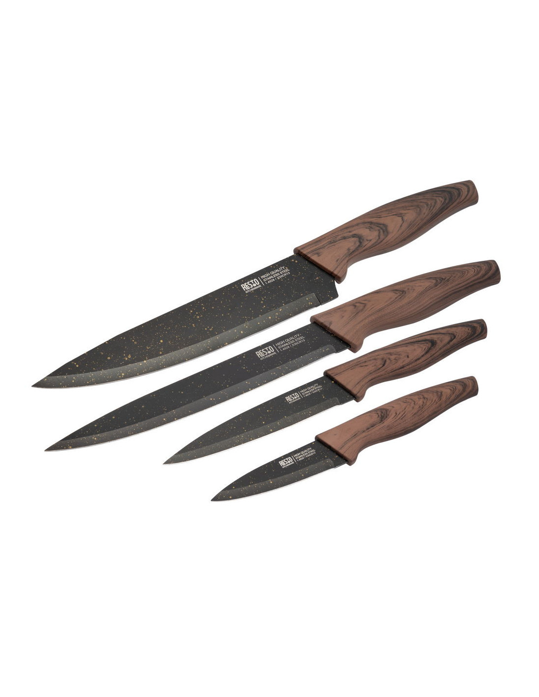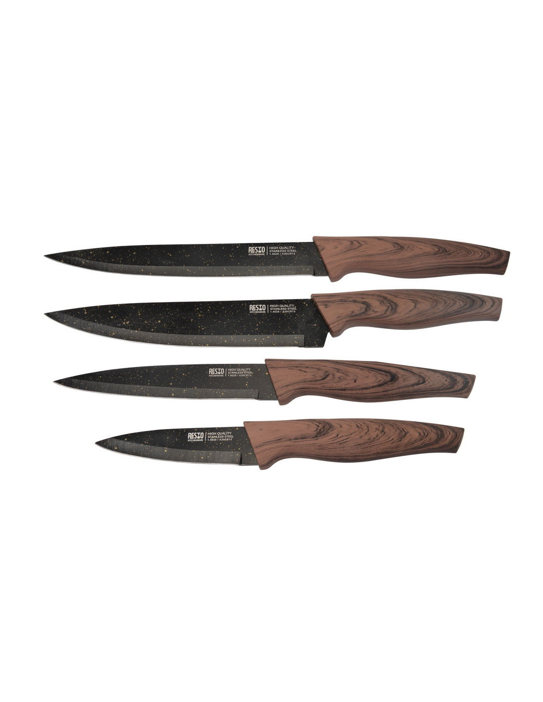 SET DE CUCHILLOS RESTO ACERO INOX. 4 PCS MANGO DE MADERA SUPERFICIE ANTIBACTERIANA