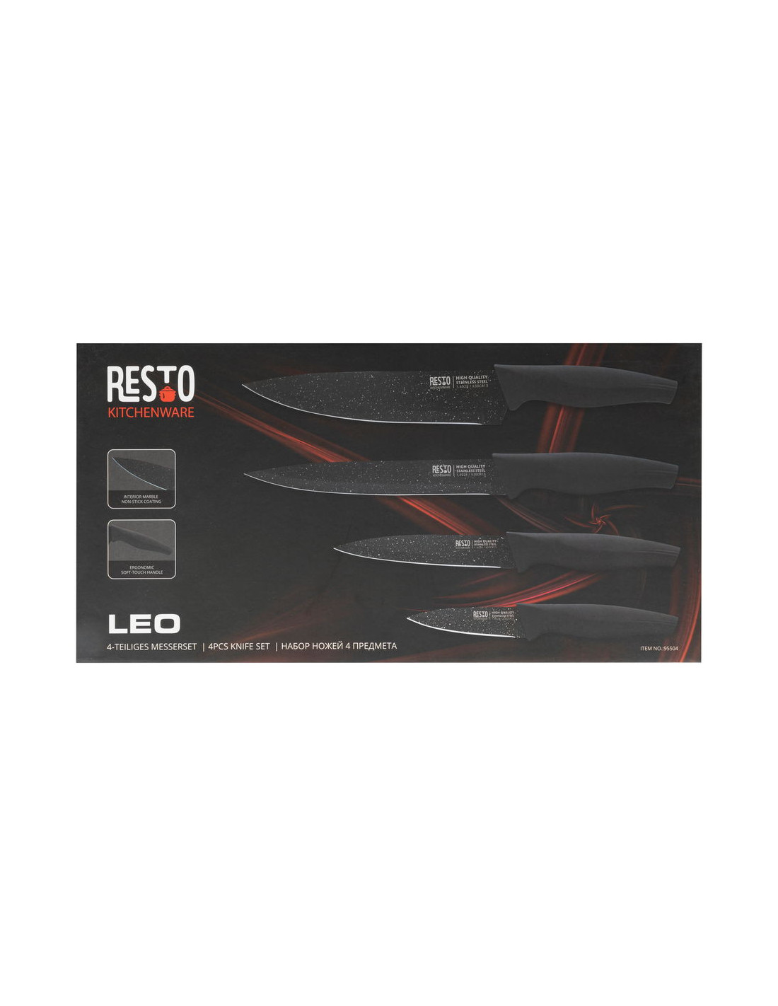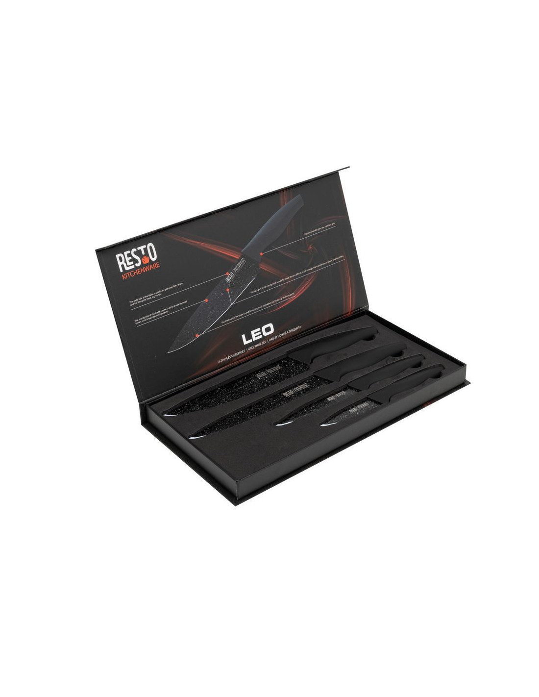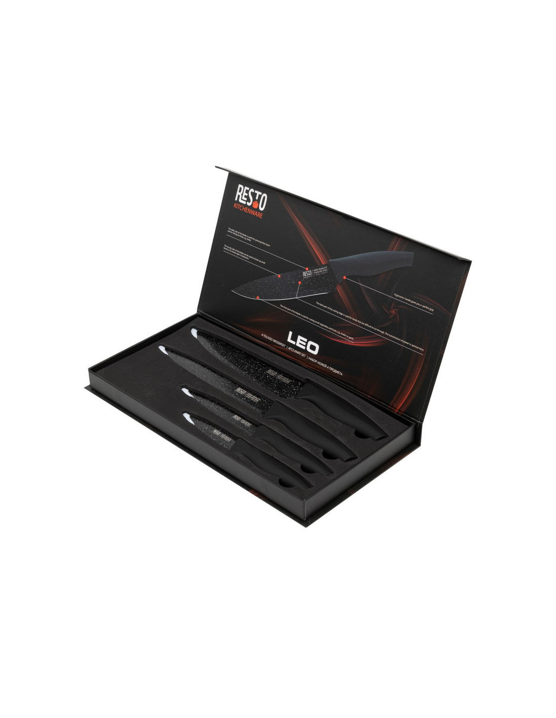 SET DE CUCHILLOS RESTO ACERO INOX. 4 PCS MANGOS ERGONOMICOS SUPERFICIE ANTIBACTERIANA NEGRO