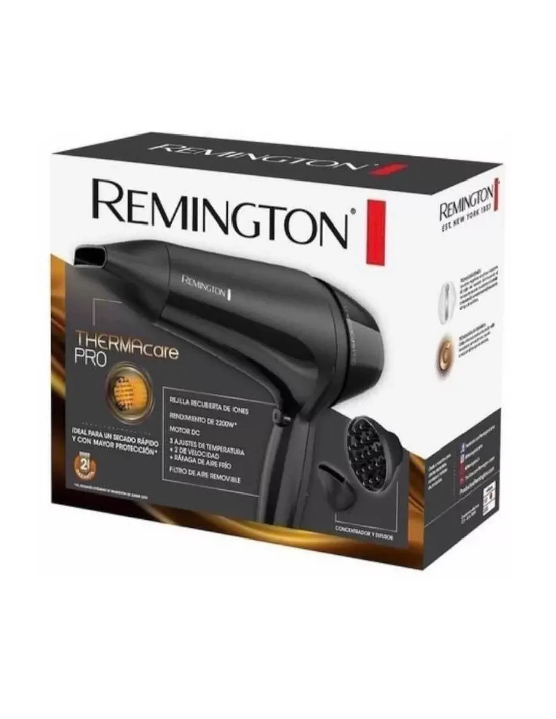 SECADOR DE CABELLO REMINGTON THERMCARE 1900W 2 VEL. 3 AJUSTES NEGRO