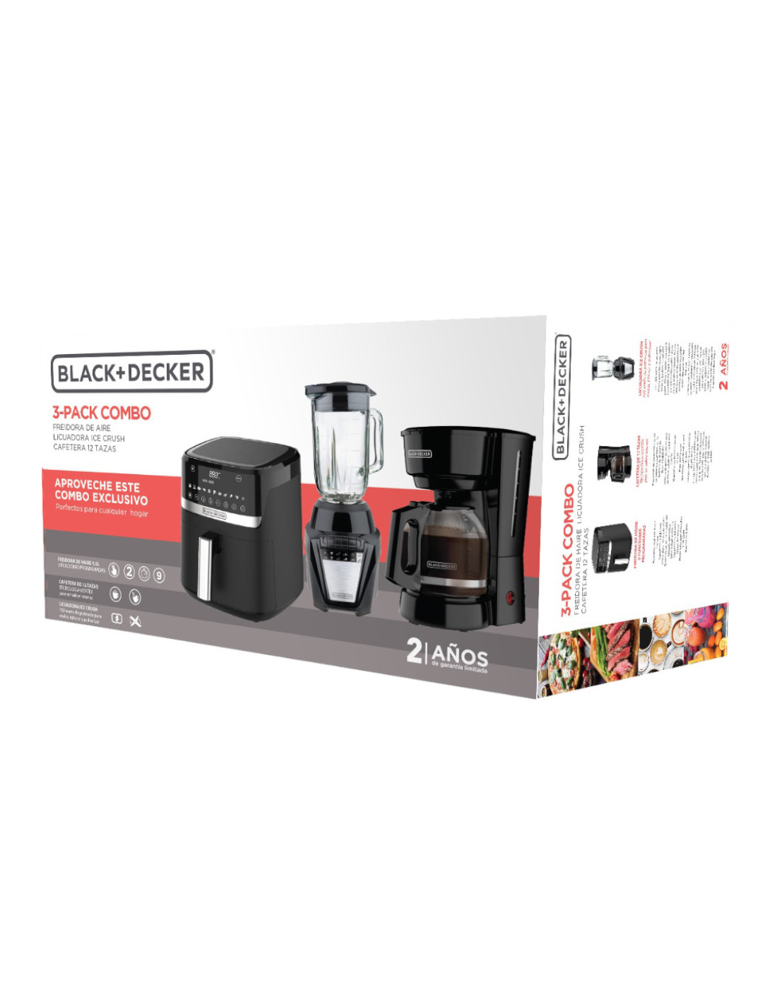 Transforma tu cocina con el Combo Black+Decker, la combinación perfecta de potencia, eficiencia y diseño. Con la freidora sin aceite, la licuadora y la cafetera, tendrás todo lo que necesitas para preparar tus platillos favoritos con facilidad y calidad profesional. ¡Una cocina de vanguardia al alcance de tu mano!