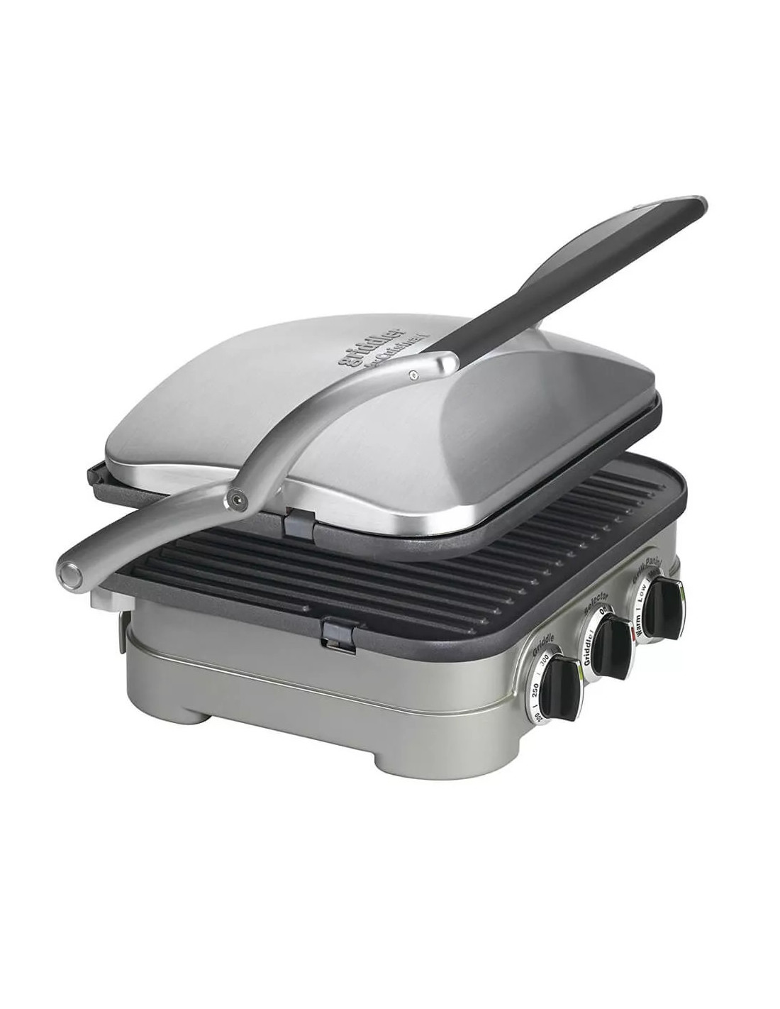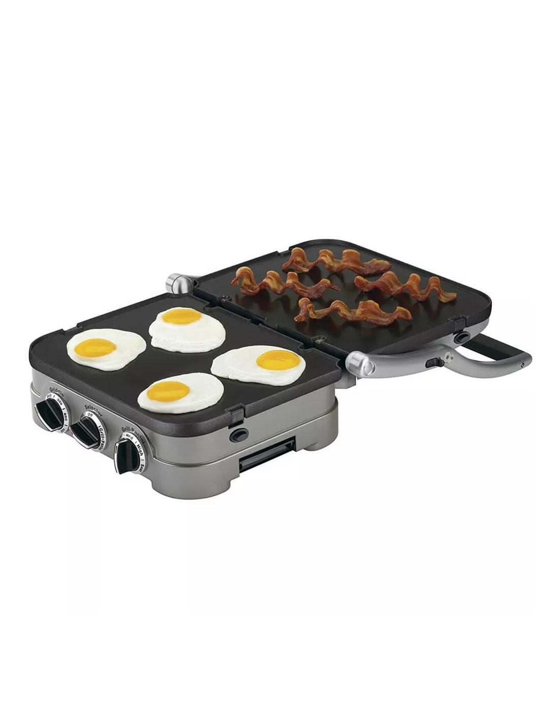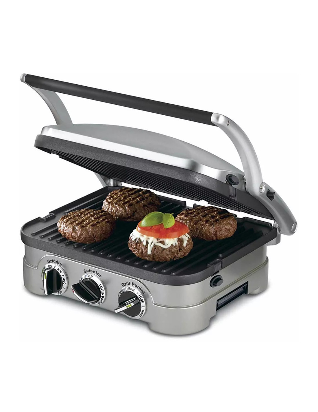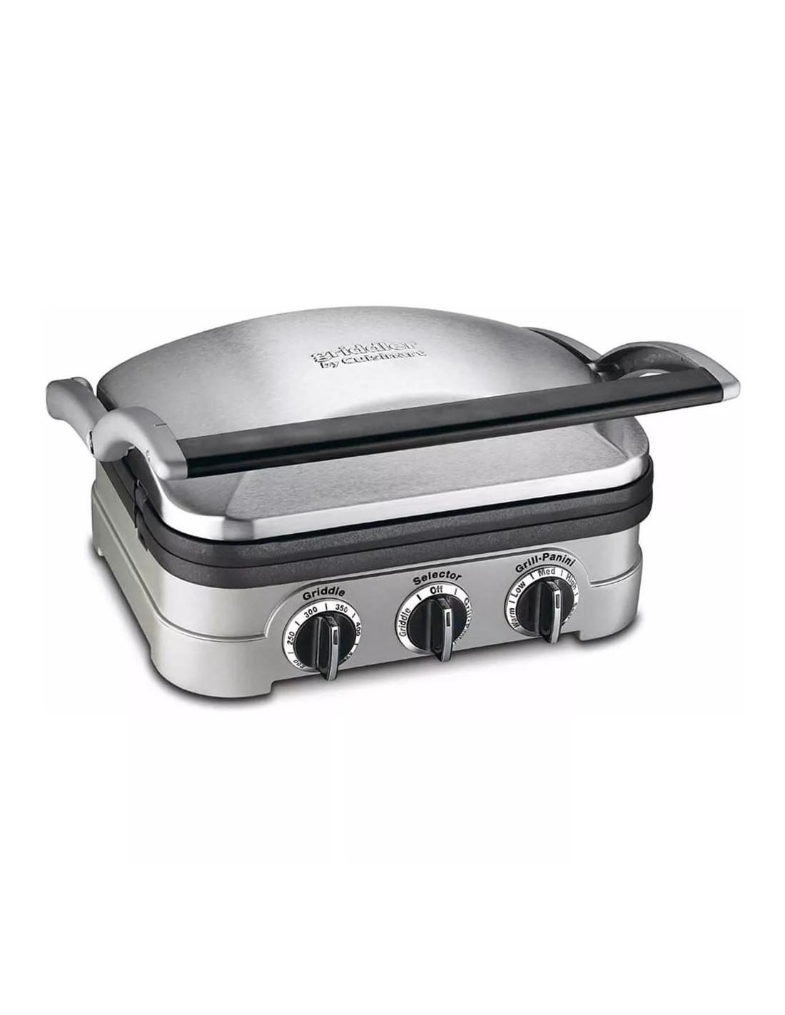Cinco opciones de cocción separadas, el Cuisinart® Griddler® puede manejar desde tortitas y salchichas hasta queso a la parrilla, filetes, hamburguesas y panini, una tapa flotante y un juego de placas reversibles convierten el Griddler® en una parrilla de contacto, una prensa panini, una parrilla completa, una plancha completa o media parrilla / media plancha.