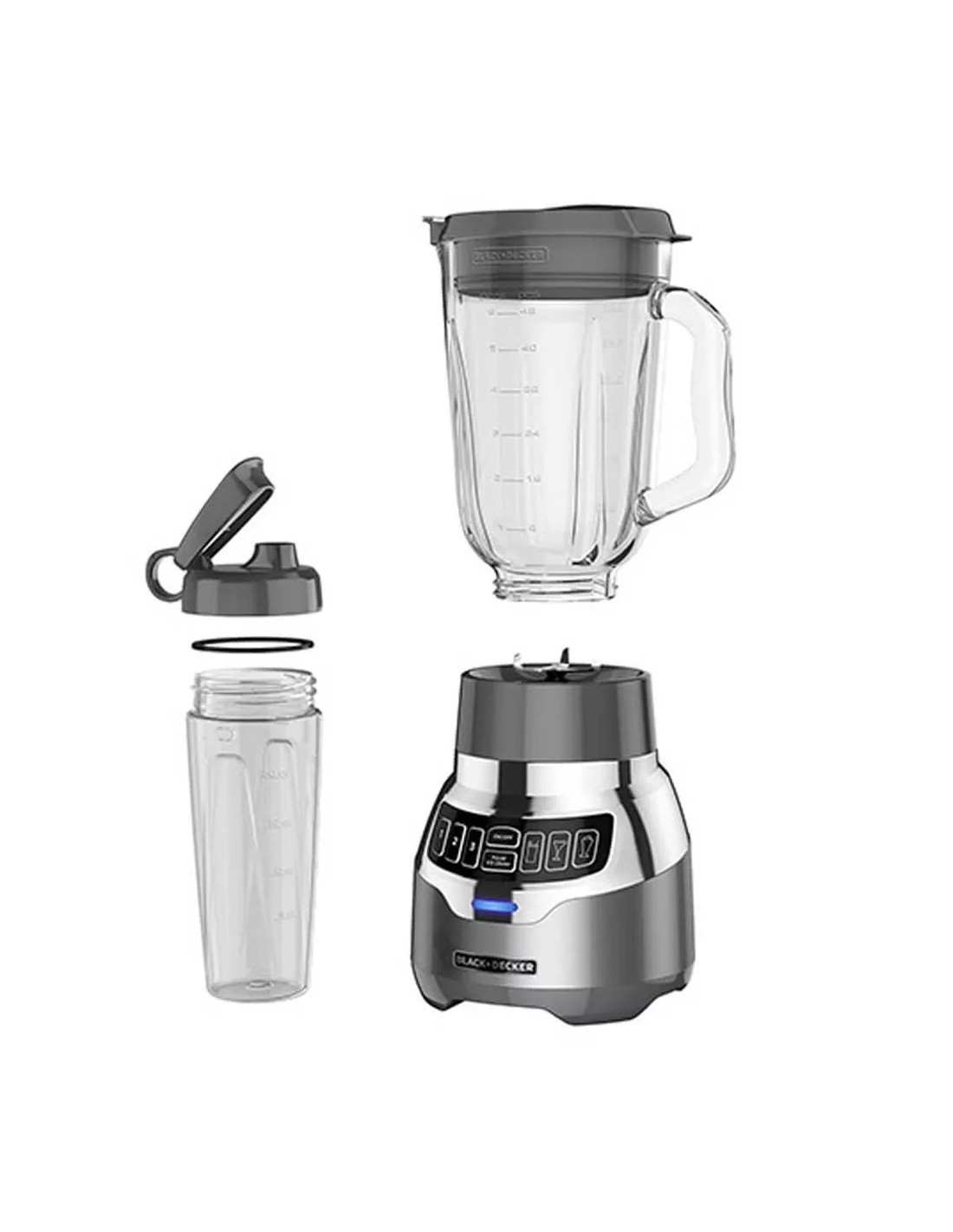 LICUADORA BLACK DECKER SILENCIOSA DIGITAL 3 VELOCIDADES 900W JARRA VIDRIO 1.5 LTS Y VASO 18 ONZ GRIS
