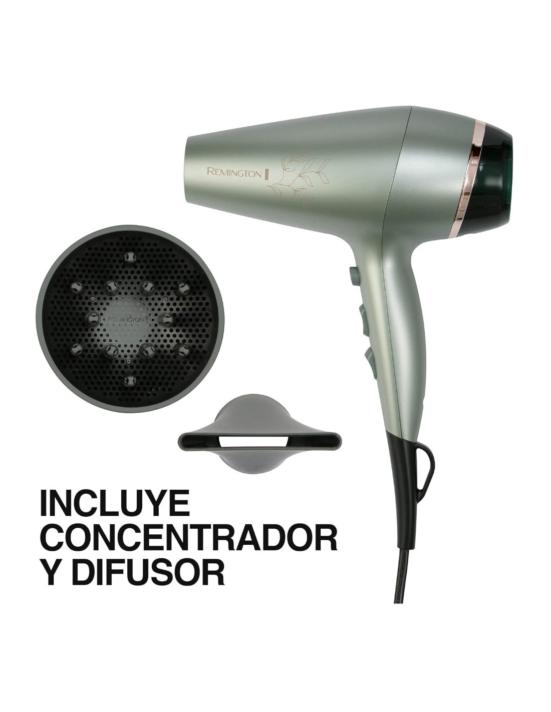 SECADOR DE CABELLO REMINGTON BOTANICALS 1875W 2 VEL.3 AJUSTES VERDE