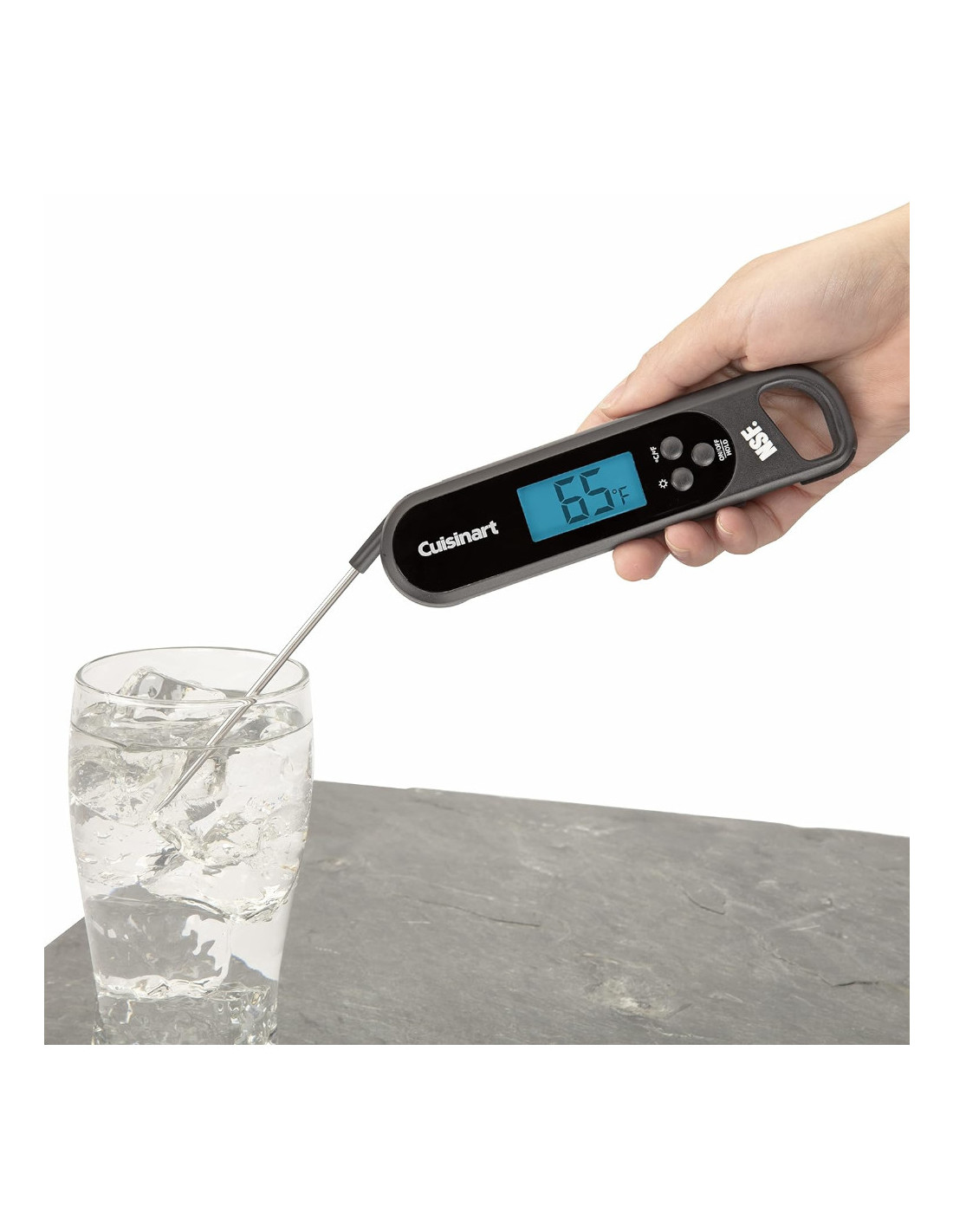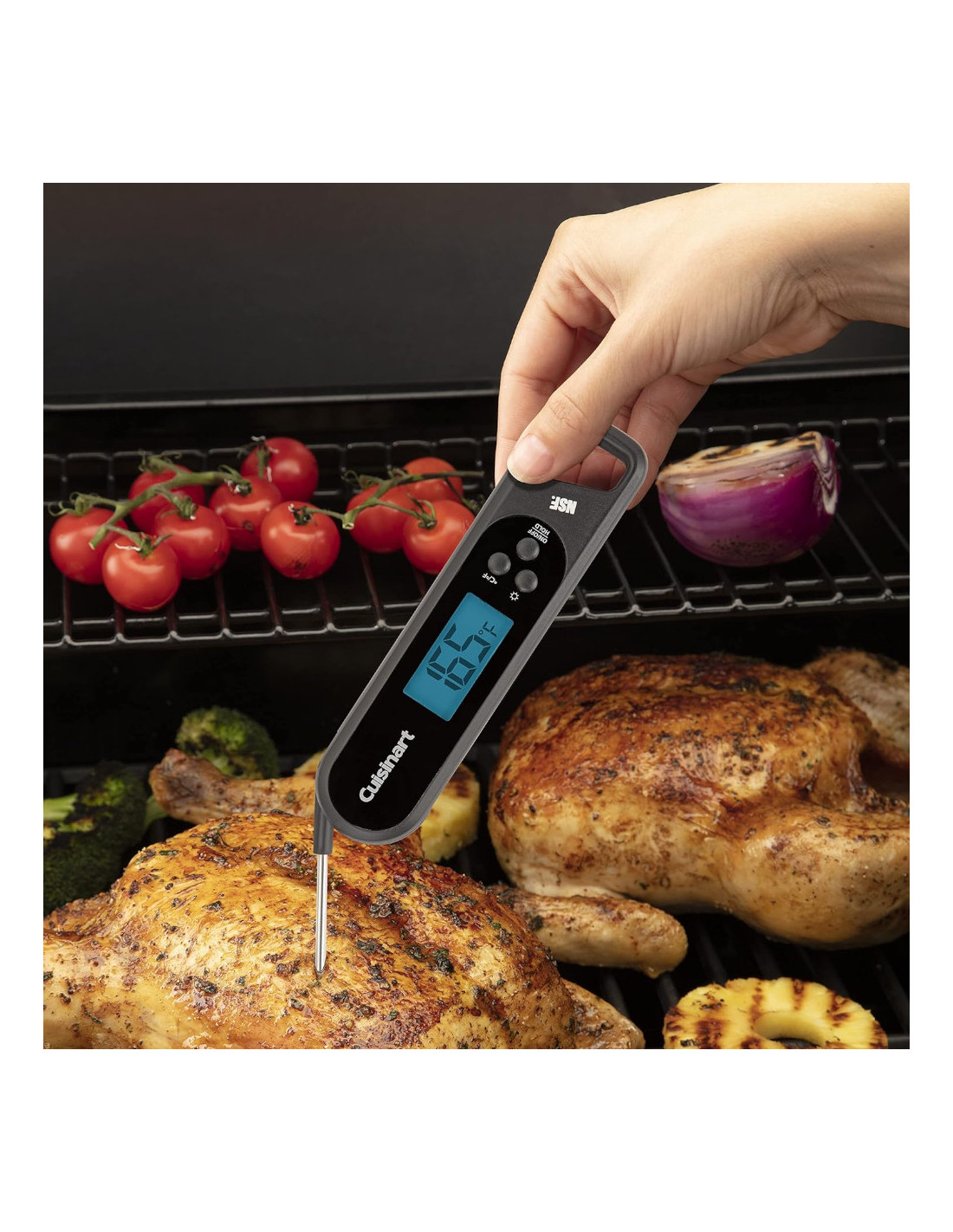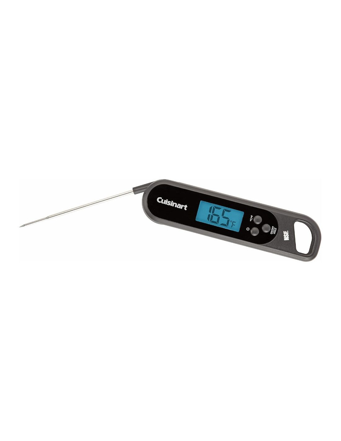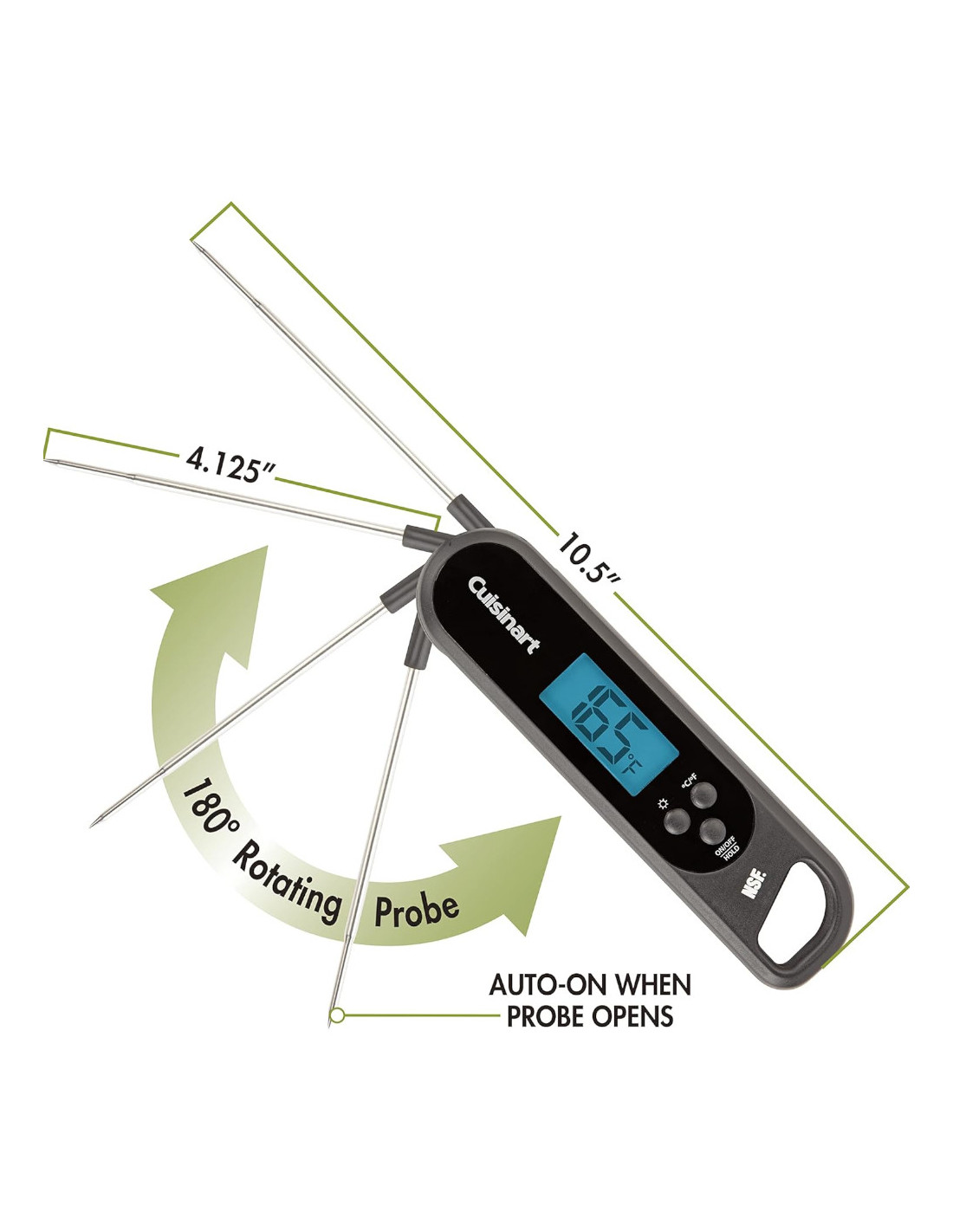 El termómetro plegable Cuisinart de lectura instantánea es una manera simple y eficaz de comprobar la preparación de tus carnes a la parrilla y también leer la temperatura de la superficie de cocción.