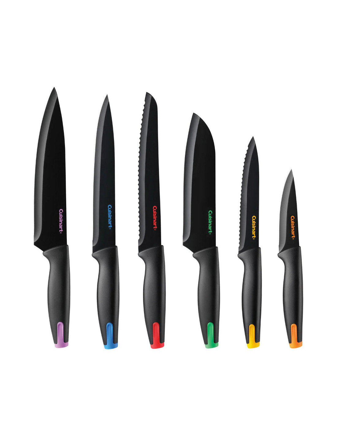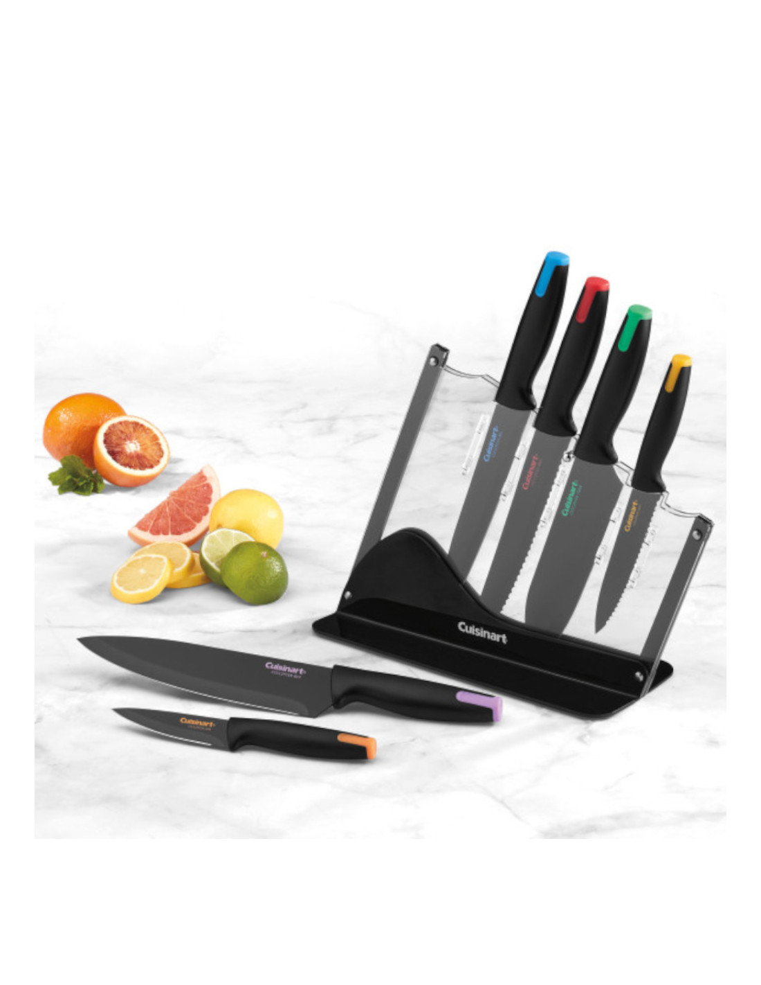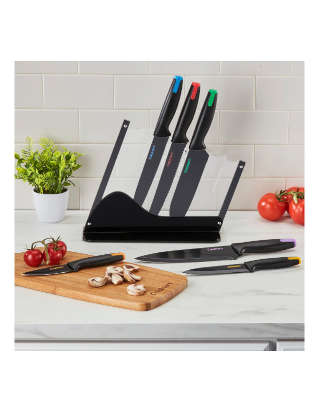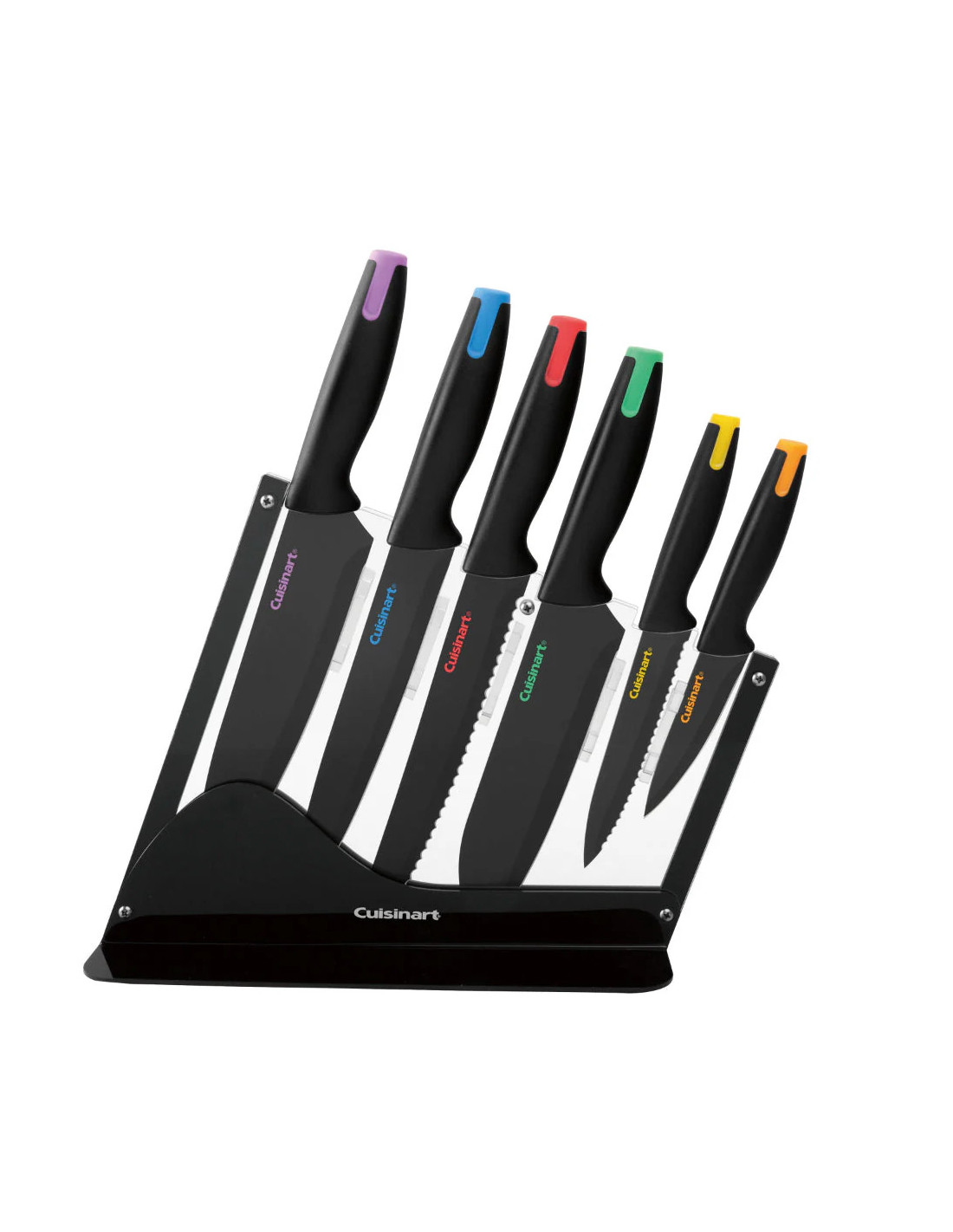 SET DE CUCHILLOS CUISINART CERAMICA ACERO INOX. -CON BASE ACRILICA-TAPAS COLORES-7 PCS- NEGRO