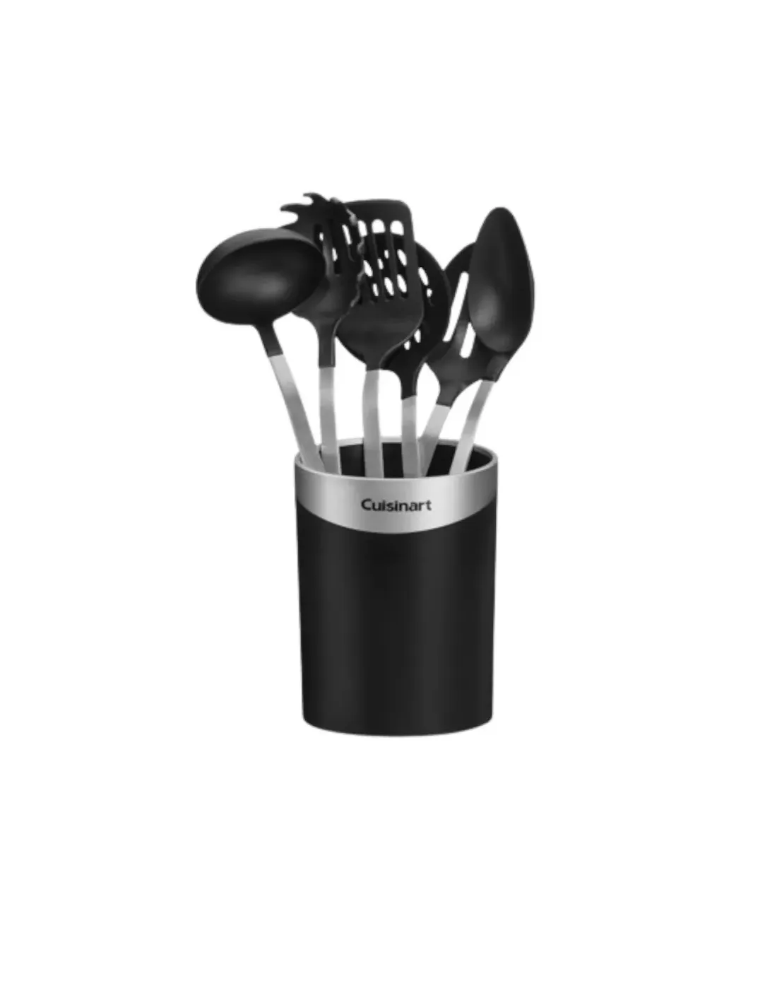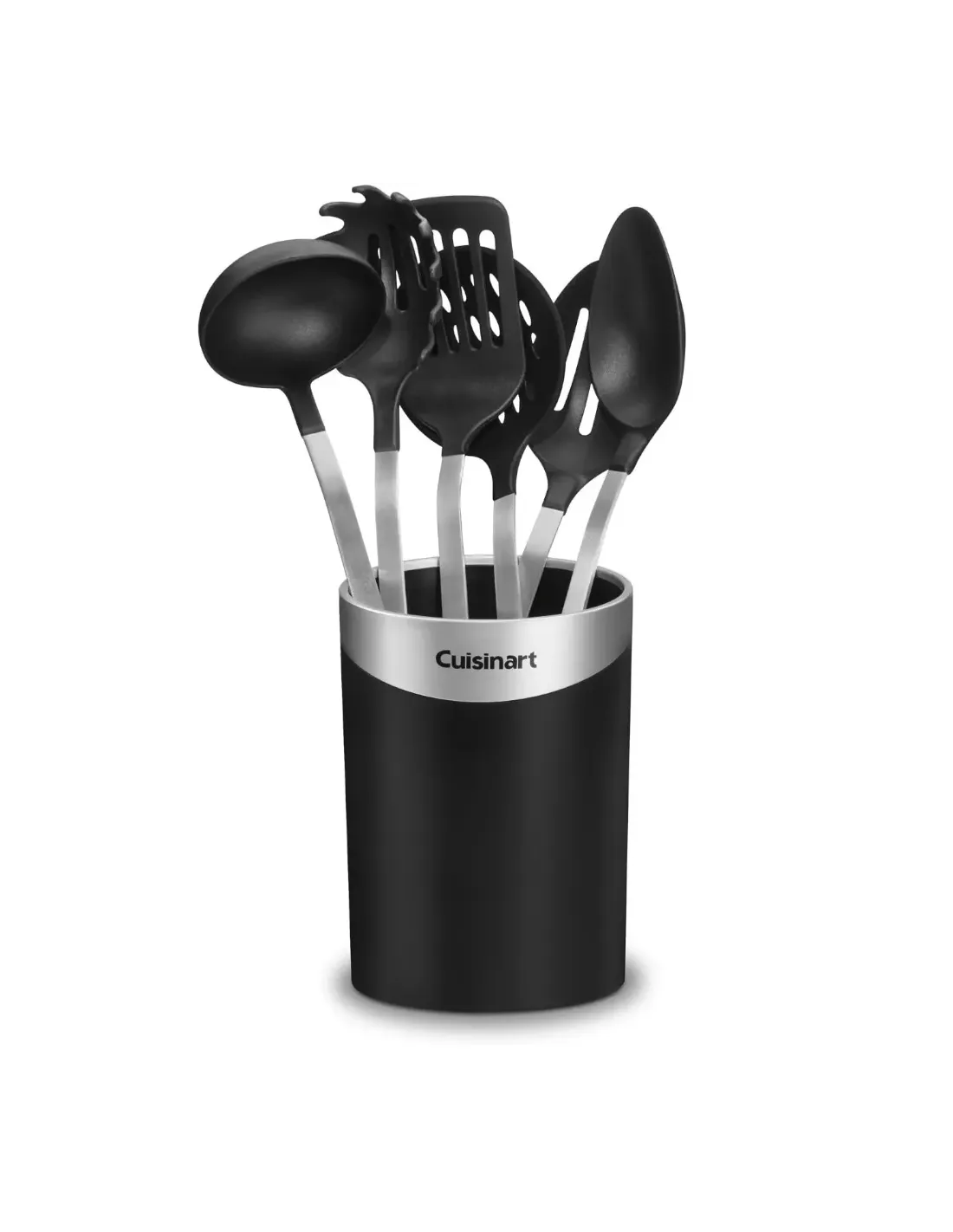 Este set de herramientas de cocina Crock with Barrel Handle de Cuisinart® reúne en un solo lugar todo lo esencial para cocinar con comodidad y estilo. Desde un servidor de pasta hasta un cucharón, cada herramienta está diseñada para ofrecer funcionalidad, resistencia y un agarre cómodo, siempre al alcance en tu encimera.