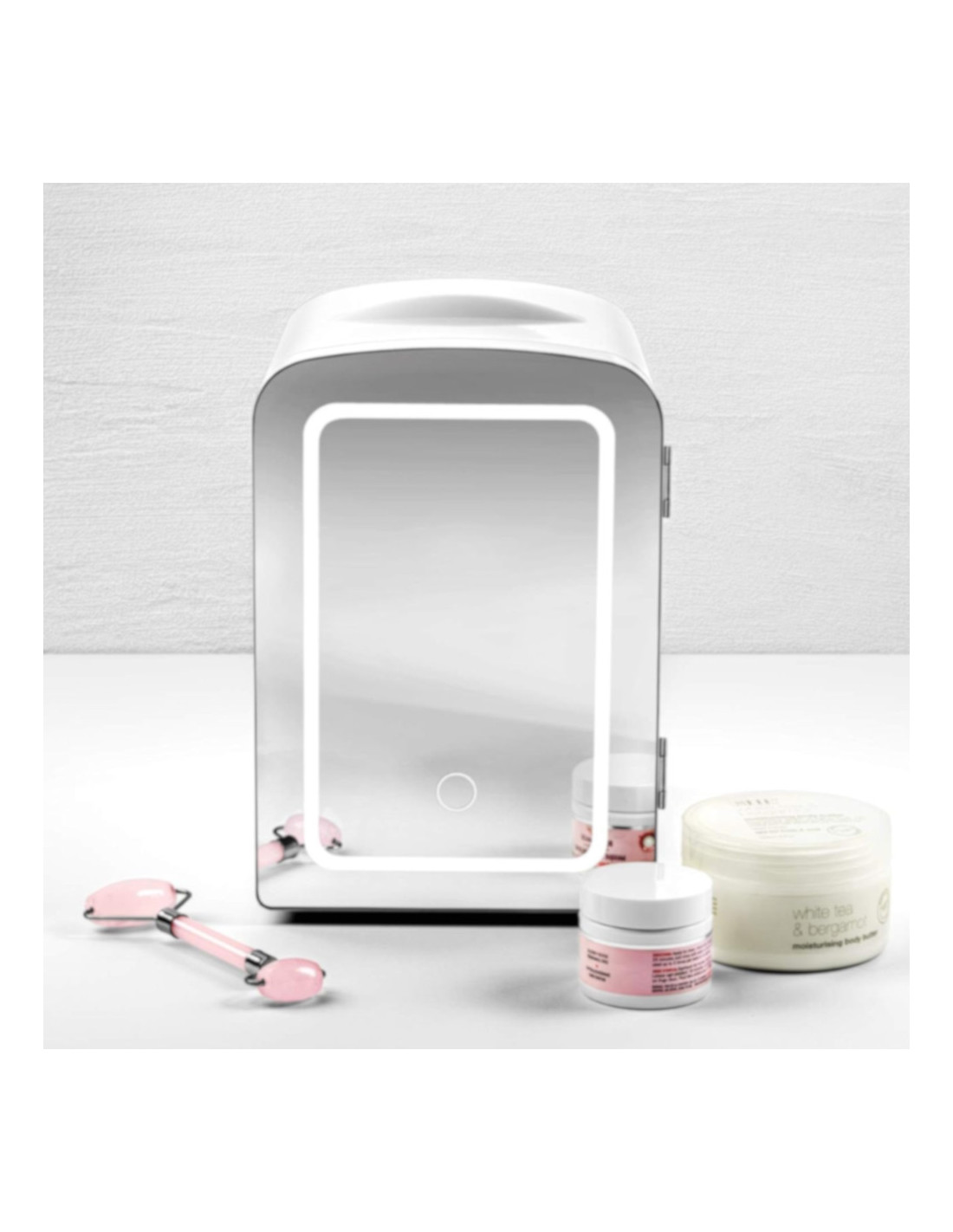 Descubre el refrigerador portátil de belleza Chefman, la combinación perfecta de estilo y funcionalidad. Con su elegante espejo y luz de anillo LED, no solo mantendrás tus productos de belleza perfectamente frescos, sino que también disfrutarás de la comodidad de tenerlos al alcance de la mano, ya sea en tu hogar, oficina o incluso en el auto. Con la capacidad de cambiar de frío a cálido con solo un interruptor, es ideal para todo, desde tu rutina de cuidado de la piel hasta mantener tu café caliente o refrigerar tus bebidas favoritas. Todo esto en un diseño compacto y portátil que hará que tu espacio brille mientras simplifica tu vida diaria.
