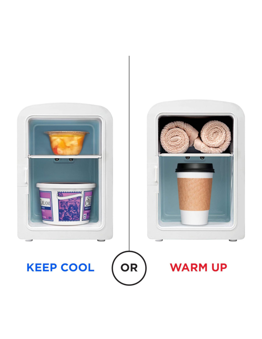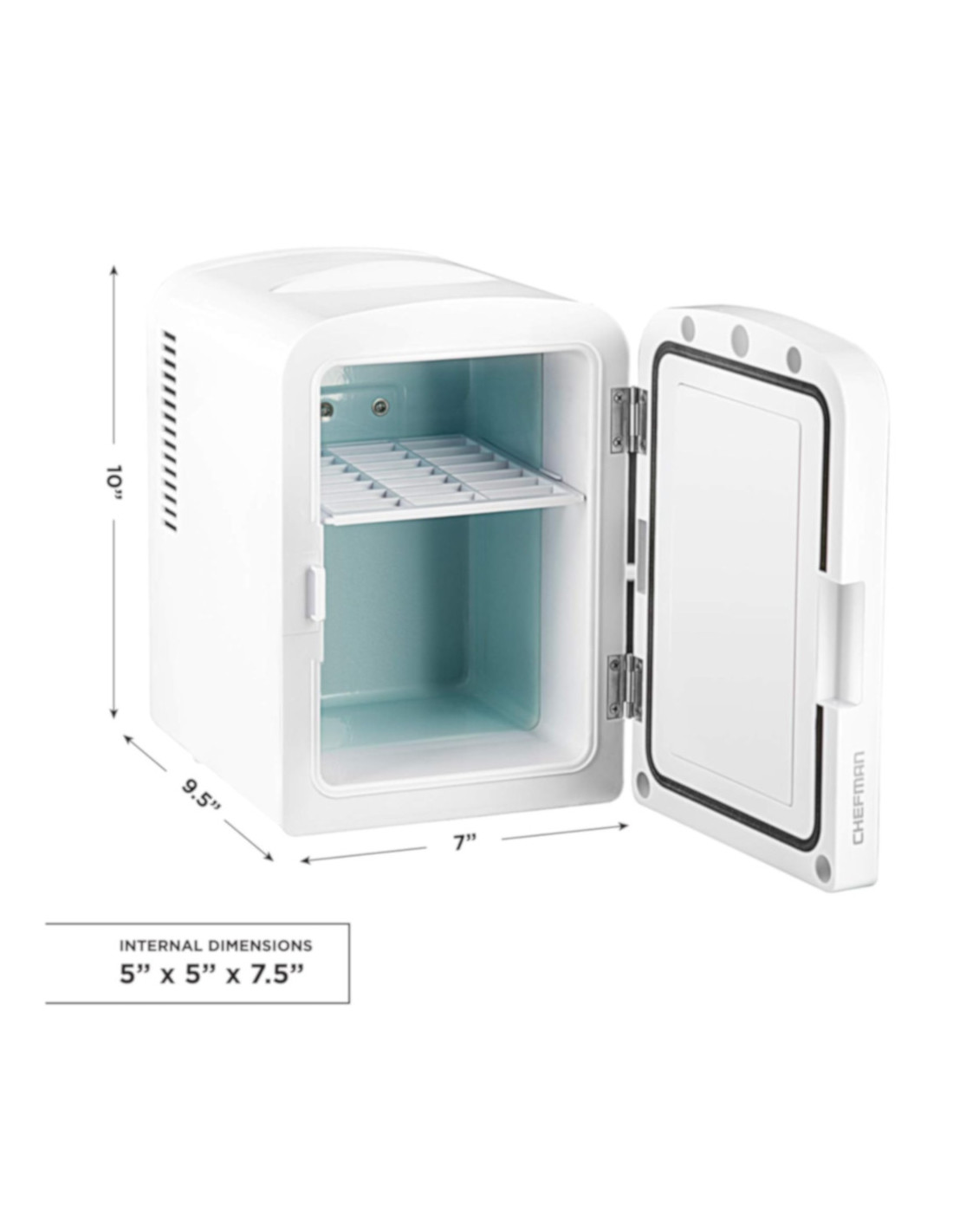 Enfriador Chefman Portatil 4lts Puerta Con Espejo Y Luz Led Ajuste Frio-Caliente Blanca