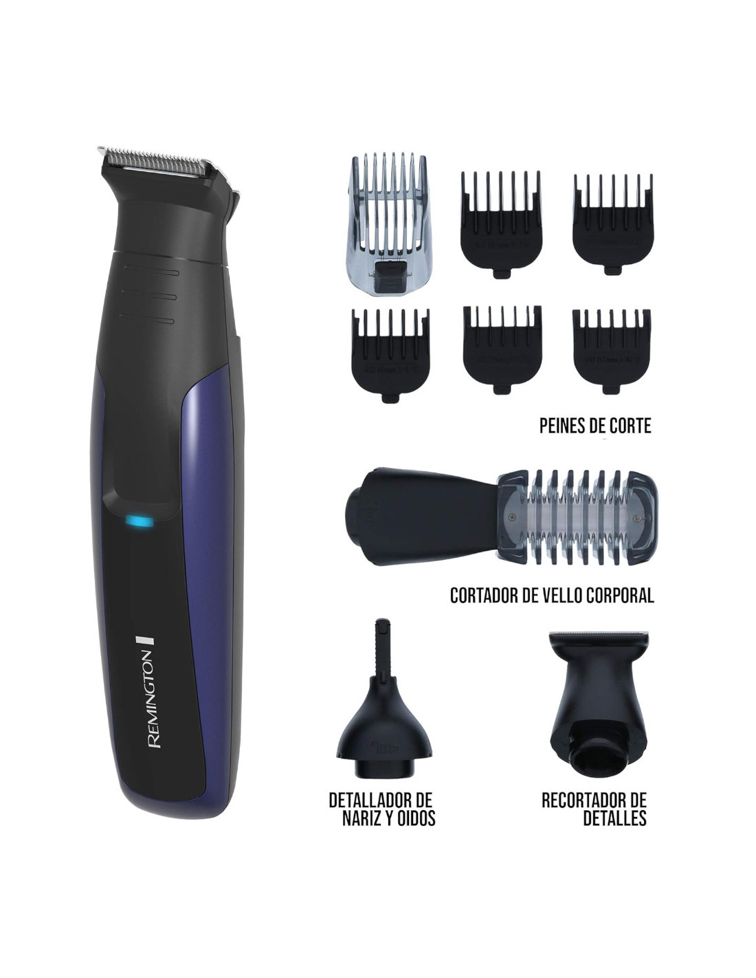 Recortadora Todo En 1 Remington Recargable 10 Pcs Cuchillas Titanio Negra-Azul