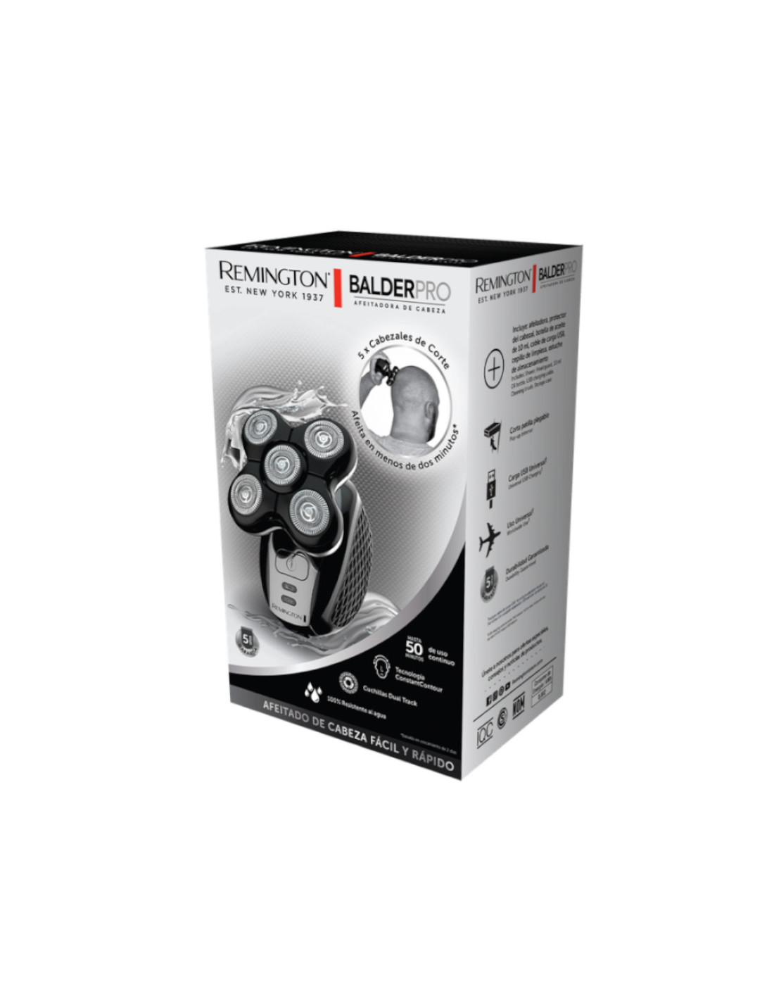 Afeitadora Recargable Remington Balder Pro 5 Cabezas Rotativa Inalambrica 50min Para Cabeza Negra