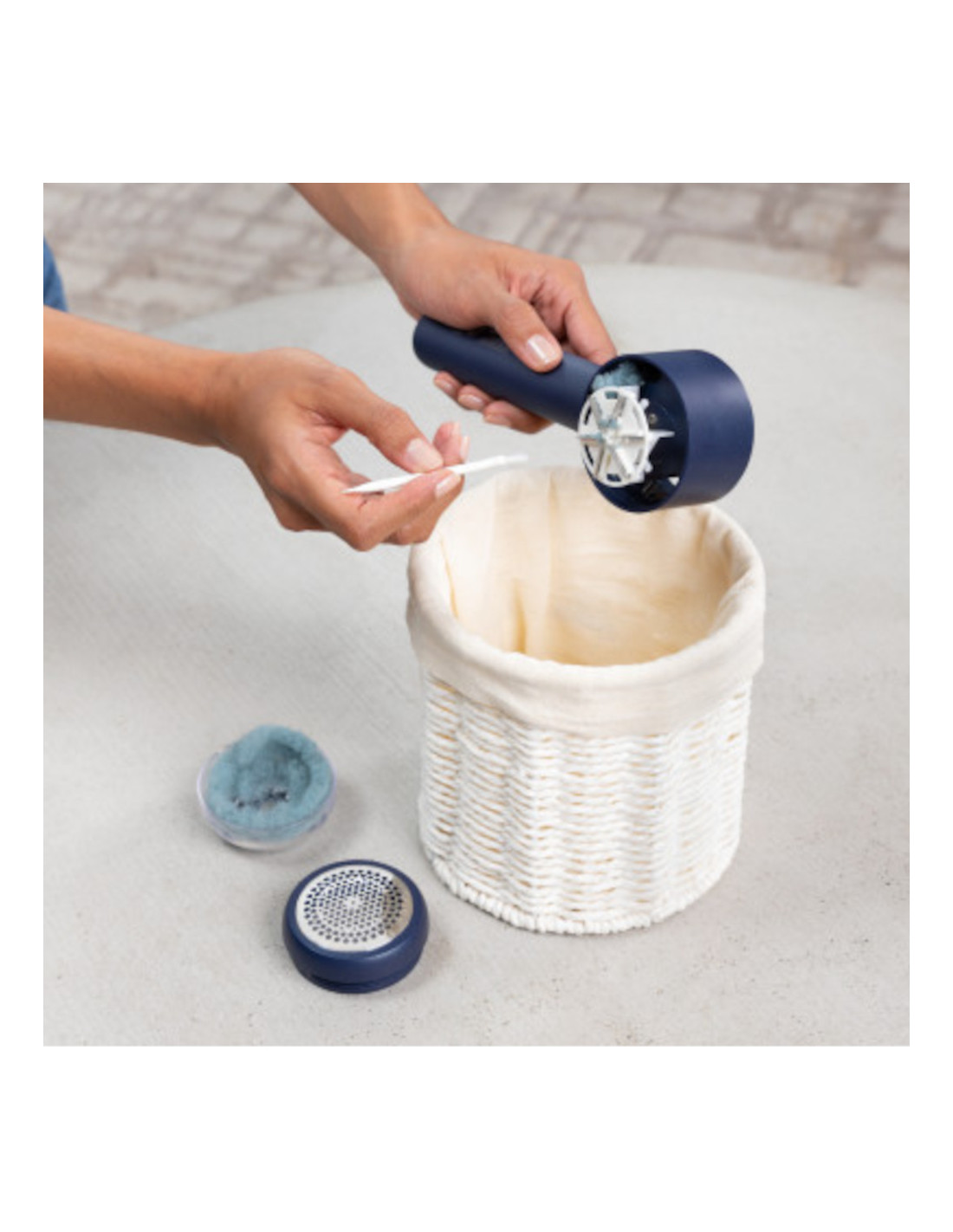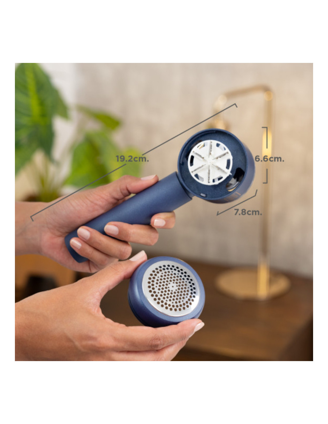 Elimina pelusas, bolitas y fibras sueltas. Batería inalámbrico y recargable Liviano Cuchillas de acero inoxidable de 6 aspas Incluye cable USB-c recargable Recipiente magnético para residuos de gran capacidad Cepillo de limpieza para fácil eliminación Ecológico- revitaliza las prendas y tejidos Indicador led de batería baja y bloqueo de viaje
