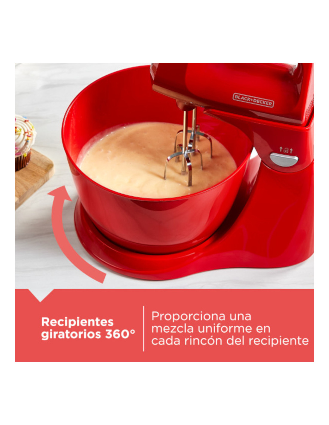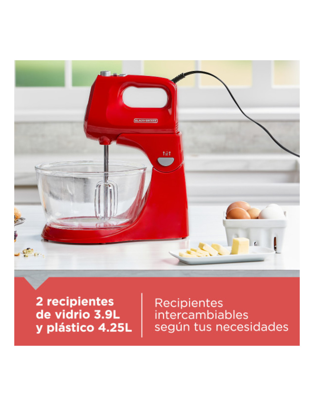 Batidora De Pedestal Black Decker 250w 5 Velocidades 2 Tazones Vidr.-Plast. Turbo Roja