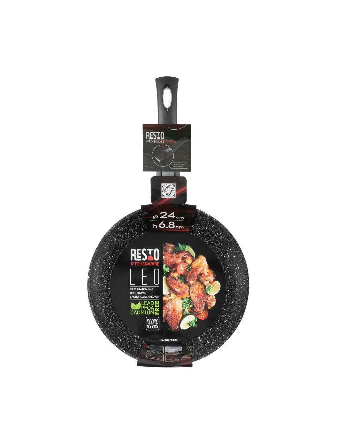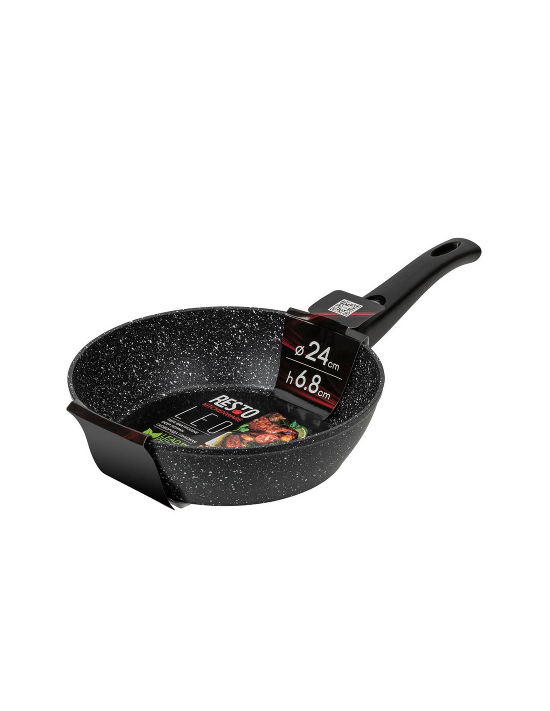 Sarten Resto Antiadh. De Marmol 24cm Ancho 6.8cm Alto Aluminio Forjado-Mango Plastico Desmontable Todo Tipo De Cocina Negro