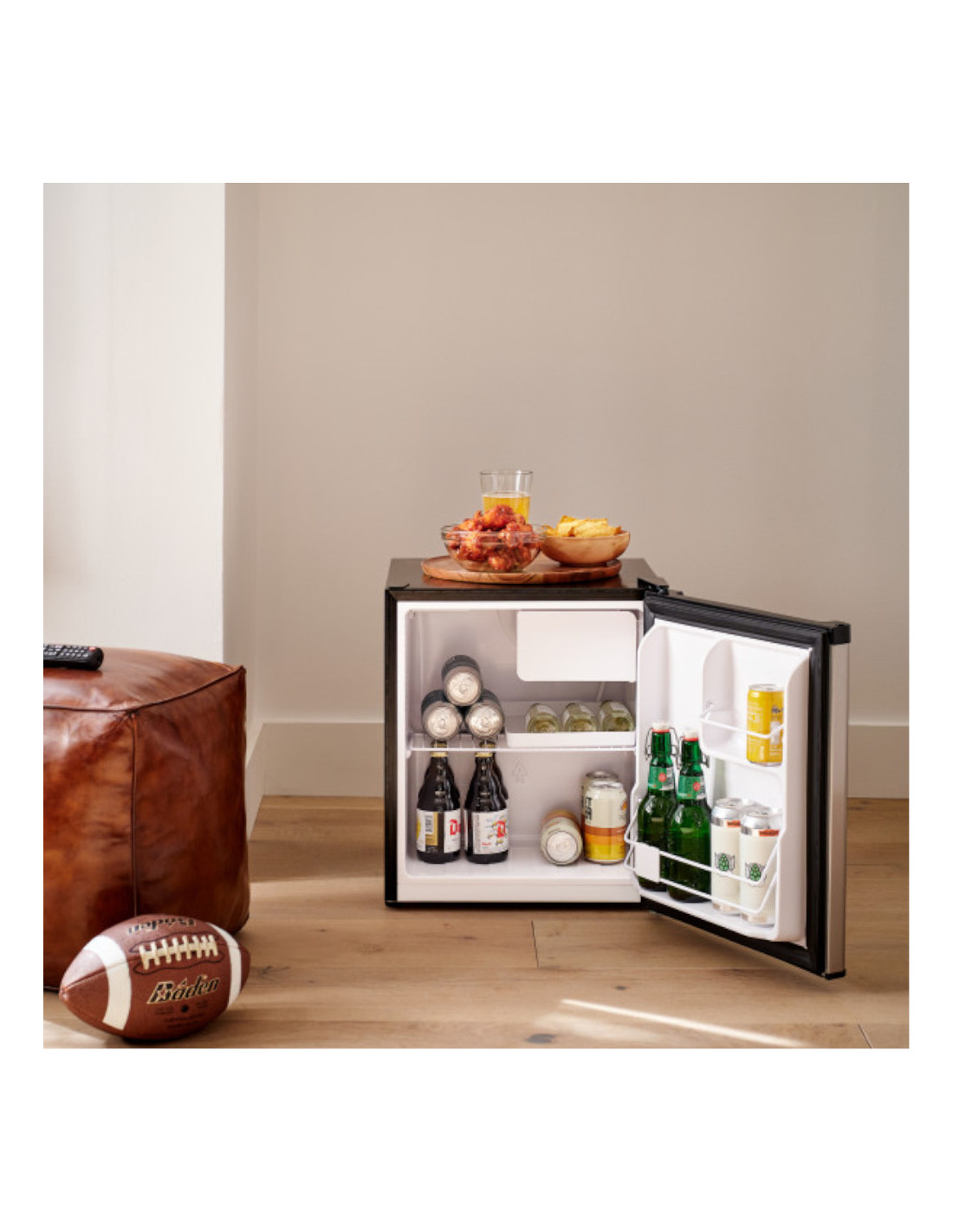 Este refrigerador compacto de 1,7 pies cúbicos, fabricado de manera duradera con acero inoxidable, ahorra espacio y, al mismo tiempo, ofrece un almacenamiento conveniente para alimentos y bebidas. El termostato ajustable facilita la regulación de la temperatura para preservar todo el sabor y la frescura. Los dos compartimentos principales profundos albergan una amplia variedad de productos perecederos y el almacenamiento integrado en la puerta brinda espacio para los artículos que desea agarrar rápidamente.