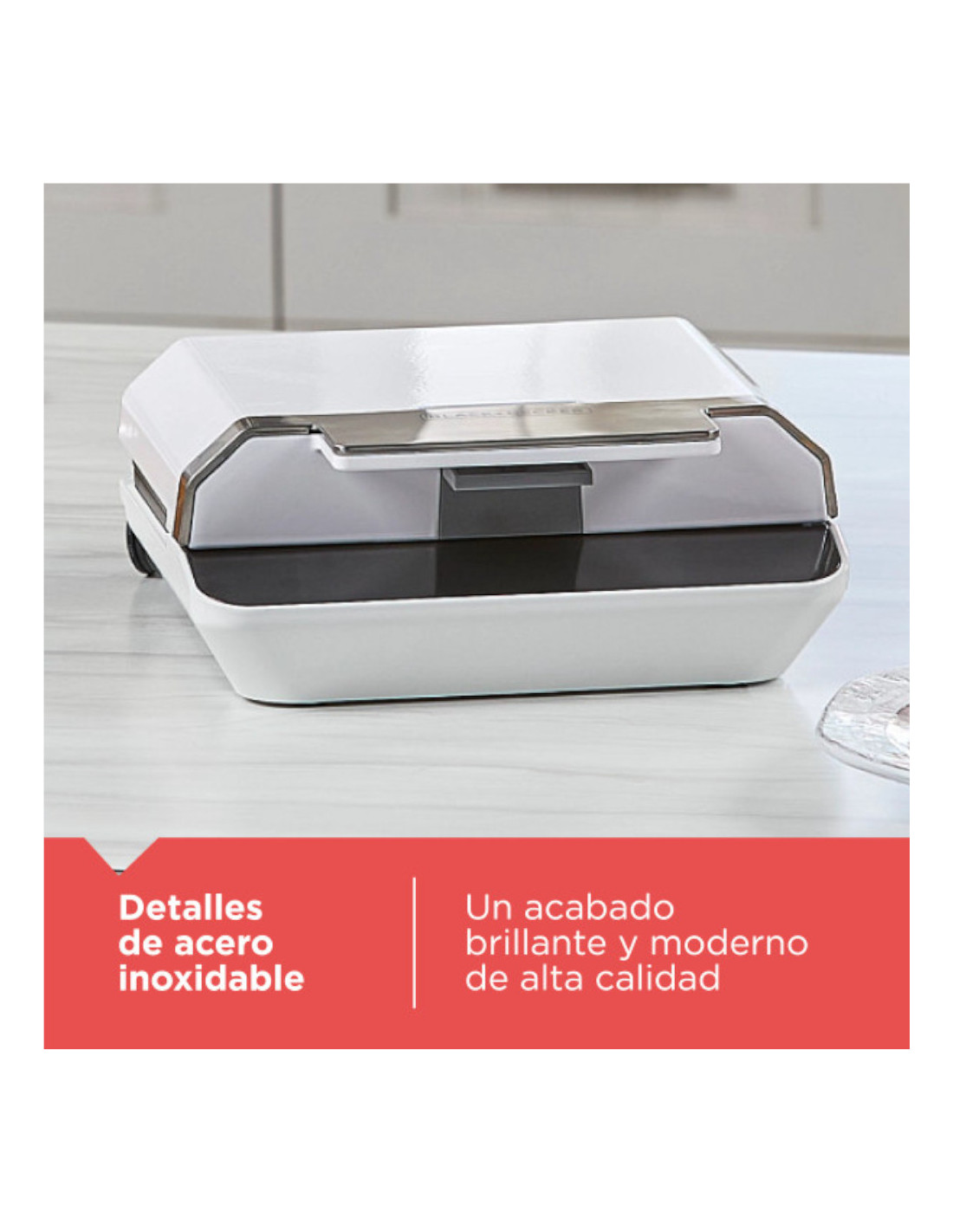 SANDWHICHERA BLACK DECKER 750W 2 PANES CLIP BLOQUEO LUCES ACERO INOX. BLANCA